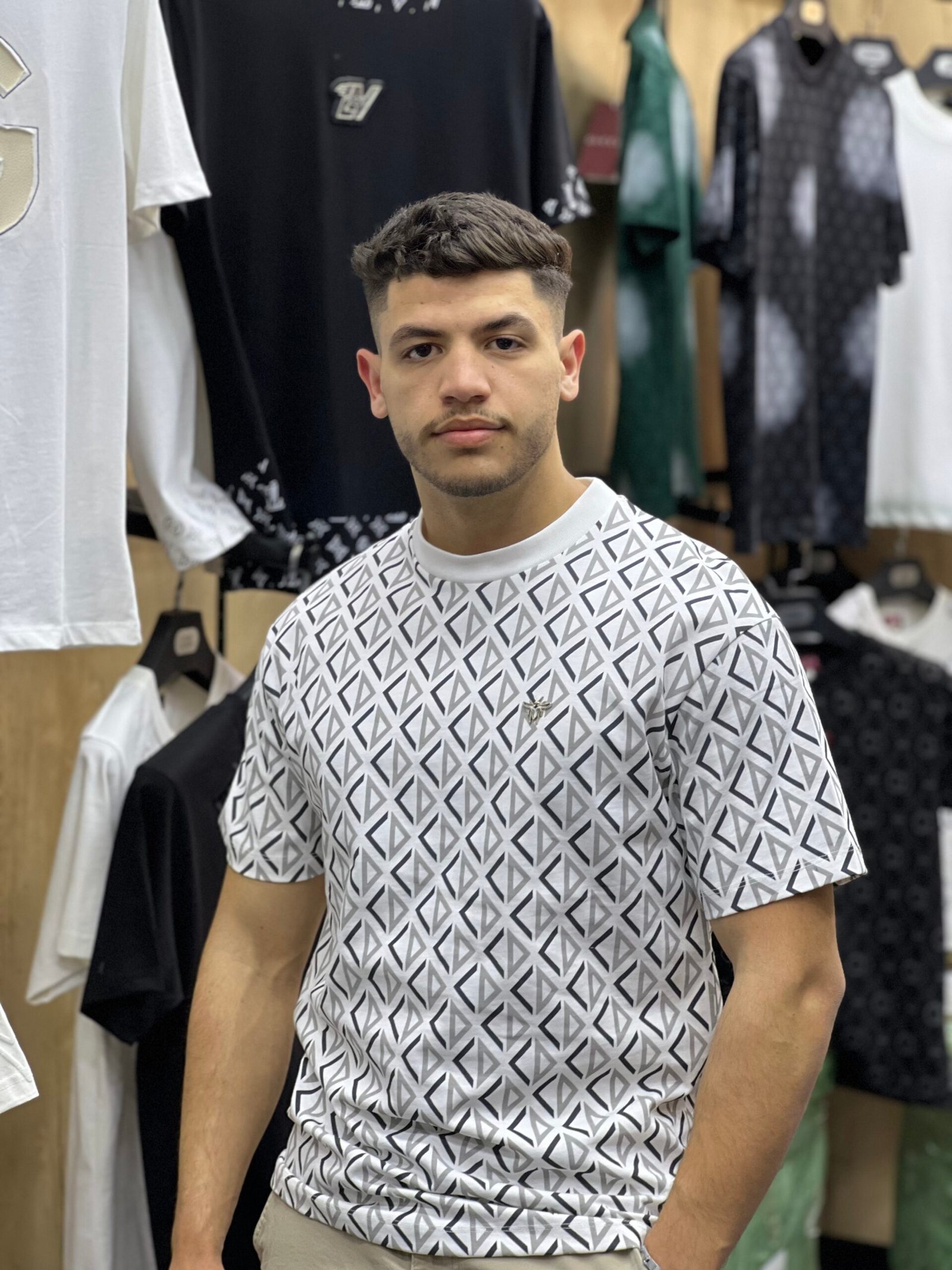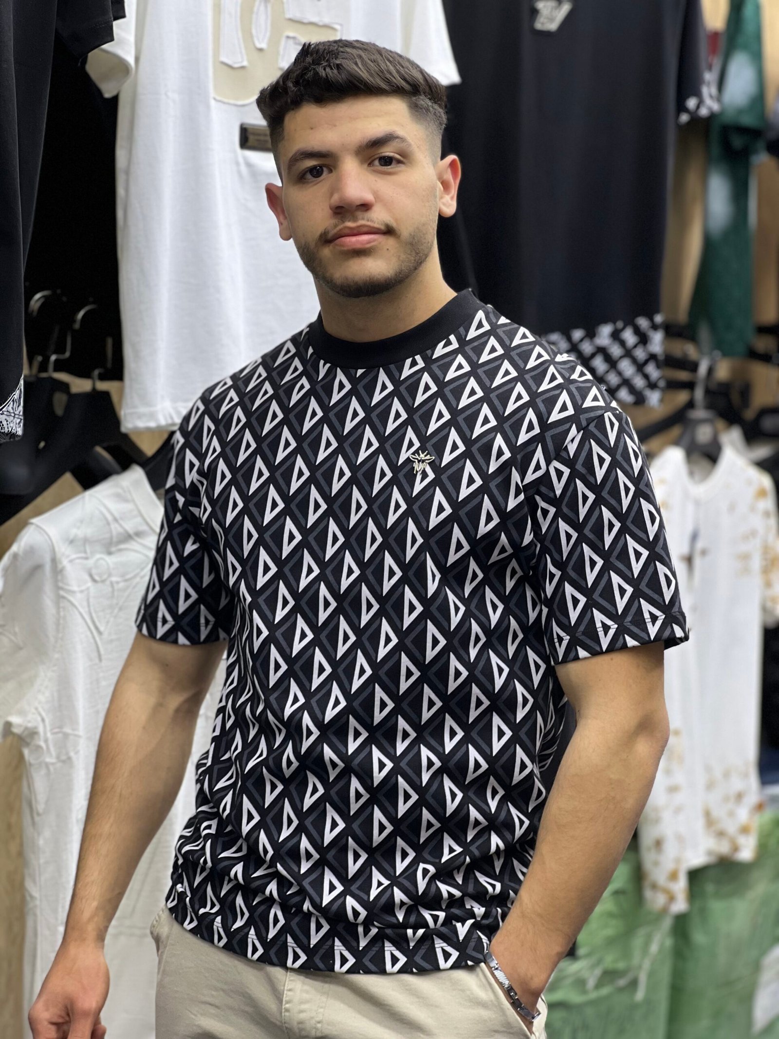 بتصميم هندسي أنيق باللونين الأسود والأبيض،