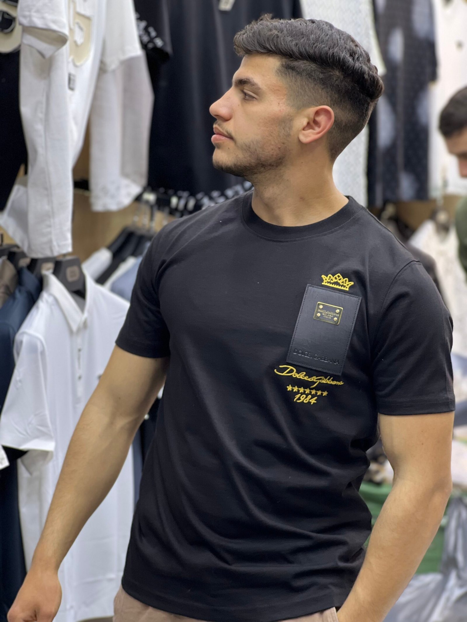 تفاصيل ذهبية ملكية تضفي فخامة لا تُضاهى: يزدان هذا التيشيرت بتفاصيل ذهبية فاخرة تضفي عليه لمسة من الرقي والتميز. يبرز تصميم أنيق باللون الأسود يعلوه تاج ذهبي ملكي، مما يمنح التيشيرت طابعًا فريدًا وجذابًا. بالإضافة إلى ذلك، تظهر كتابة أنيقة بخط ذهبي تضيف لمسة فنية راقية، إلى جانب تفاصيل أخرى ذهبية تزيد من فخامة التصميم. هذه التفاصيل الذهبية ليست مجرد زينة، بل هي رمز للأناقة الملكية والاهتمام بالتفاصيل الدقيقة الذي يميز علامة Dolce & Gabbana.