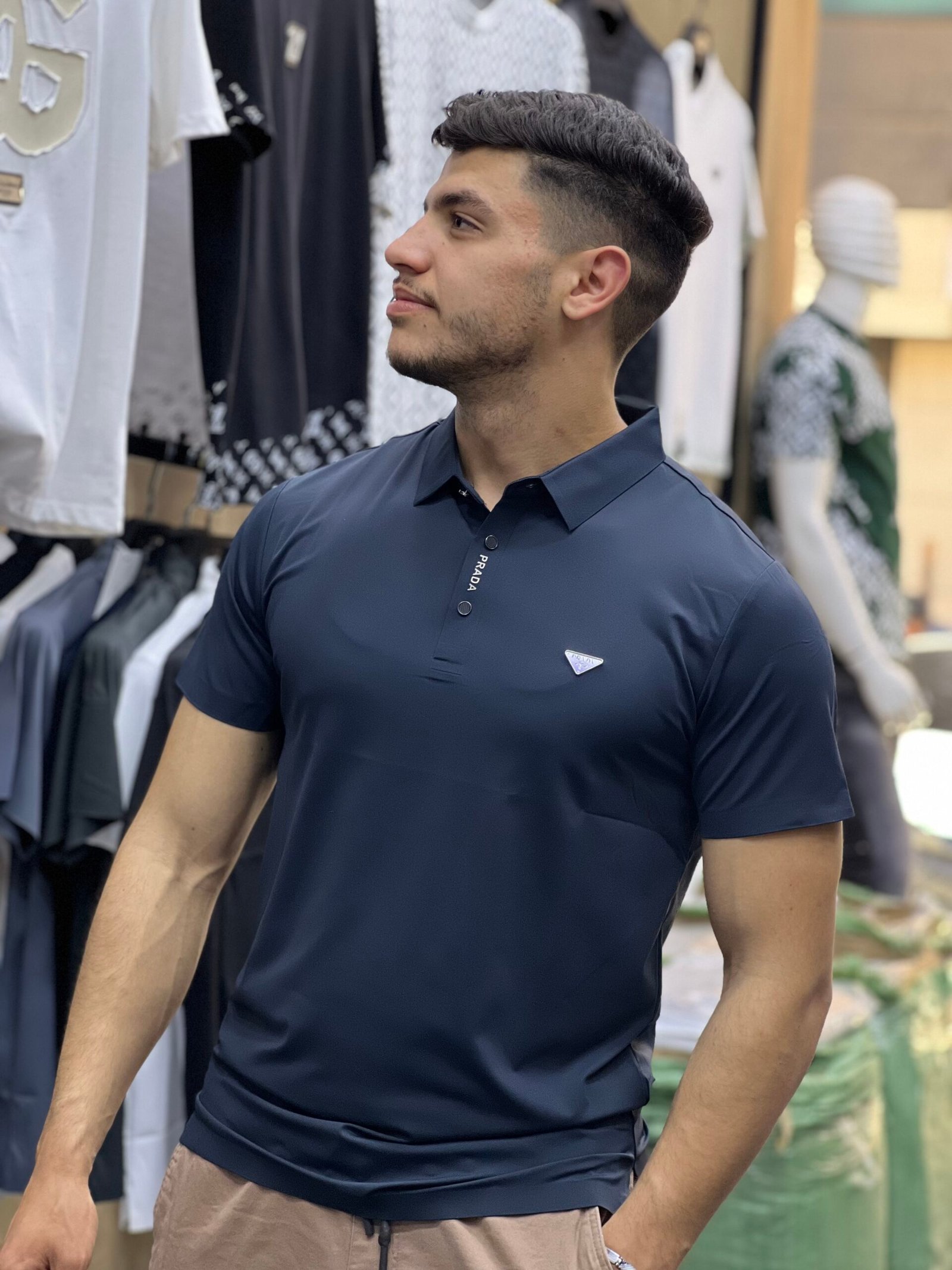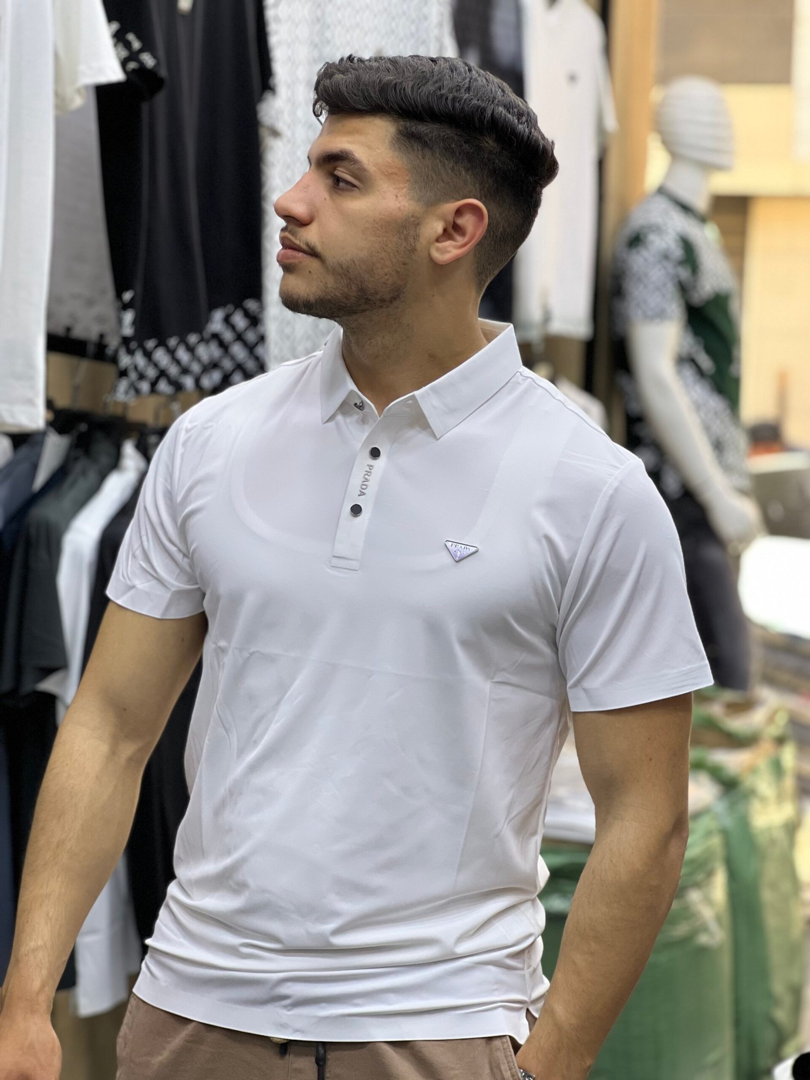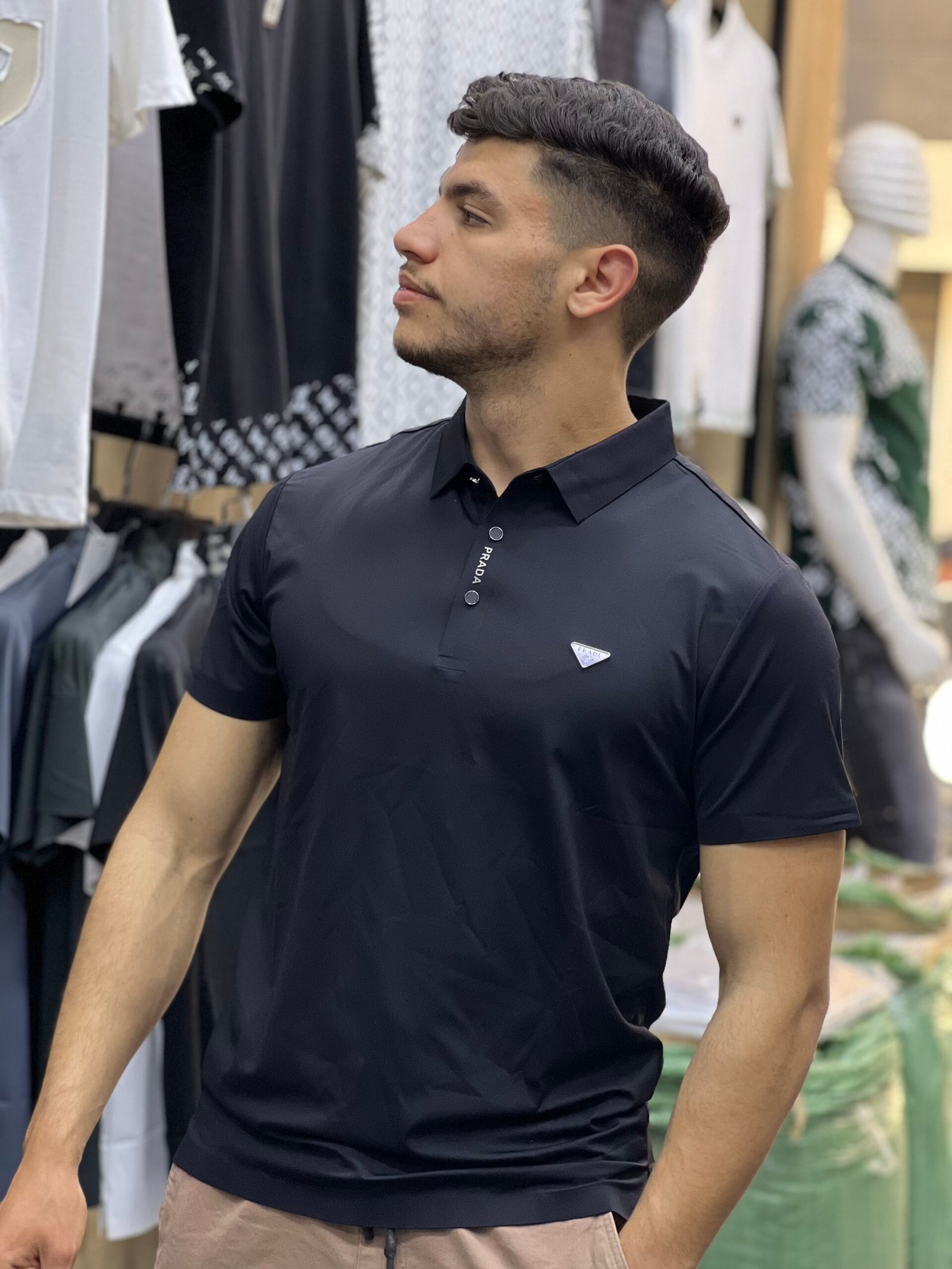 ارتقِ بإطلالتك الكاجوال الأنيقة مع هذا التيشيرت البولو المميز من Prada. يتميز بتصميم كلاسيكي بلمسة عصرية وشعار العلامة التجارية الأيقوني. متوفر بخمسة ألوان أنيقة ومتنوعة لتناسب جميع أذواقك: الأسود الأنيق، الأزرق الليلي العميق، البني الدافئ، الرمادي العصري، والأخضر المنعش. مصنوع من أجود الخامات ليمنحك الراحة والأناقة في كل الأوقات.